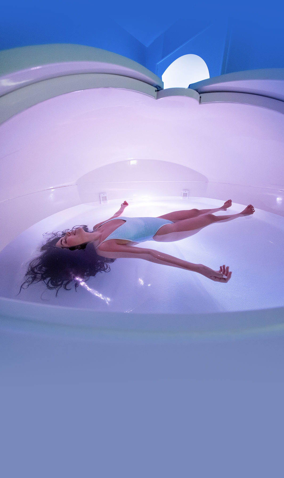 What is float therapy? It's a luxury spa experience, effortlessly floating in your own private pod for total pain relief and profound relaxation. Using over 1,000 pounds of salt in just 10” of water, the extreme buoyancy of the salt water provides an effortless float, a deep release of tension, and pain relief that's hard to come by anywhere else. And don't worry about swimming skills, floating is effortless – and yes – it’s even safe to drift off to sleep on the water!